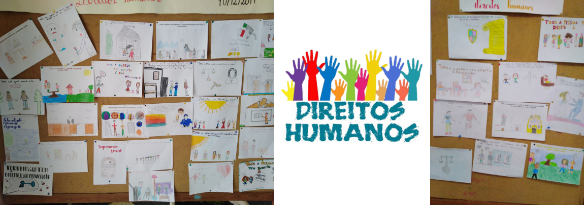 Os alunos das turmas C, do quinto e sexto anos, ilustraram os Direitos que estão expostos no átrio da SL2.