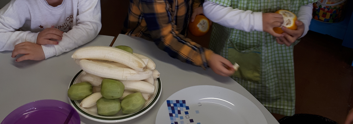 A sala da educadora Maria da Luz trabalhou com o seu grupo a história da casinha de chocolate elaborada com fruta, transformada em alimentação saudável e palmeiras frondosas que nos fornece oxigénio e sombra indispensável para o nosso bem estar (saúde).