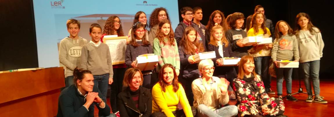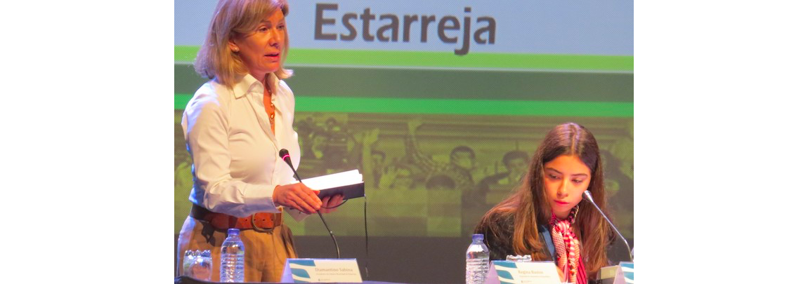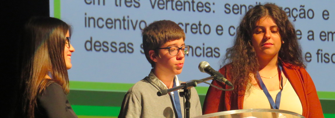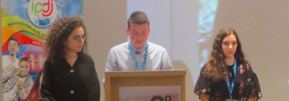Apresentação do Projeto de Recomendação da Serafim Leite, na Sessão Distrital do “Parlamento dos Jovens” pelos alunos Isa Soares (12.º A), Sofia Paiva (10.º B) e Samuel Silva (11.º B)
