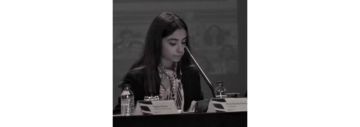 Maria Eduarda Oliveira (8.º C) na assunção do seu cargo de Presidente da Mesa da Sessão Distrital do “Parlamento dos Jovens”