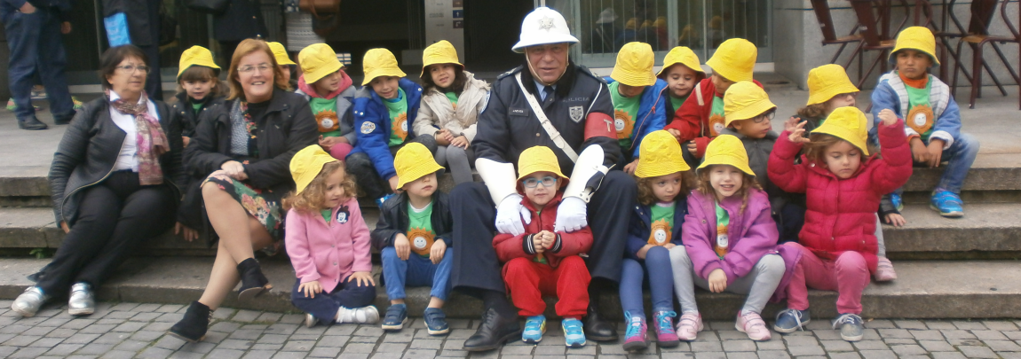 Fotos de homenagem ao ultimo sinaleiro de S. João da Madeira. Os meninos do JI de Fundo de Vila em representação do Agrupamento.