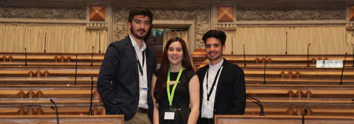 Sessão Plenária na Assembleia da República – “Assimetrias Litoral / Interior”: Luís Neves (11.º A), Inês Silva (11.º B) e Manuel Barrios (11.º A)