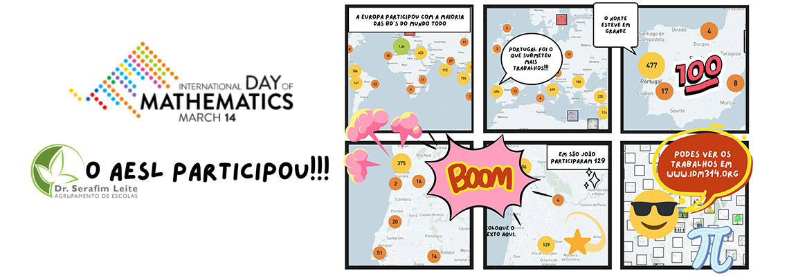 Este dia foi celebrado com uma exposição de trabalhos realizados pelos alunos, alusivos ao tema “Matemática para todos”. Neste âmbito, trouxeram ao de cima o seu bom humor e inventaram bandas desenhadas que mostraram o lado divertido da matemática.
