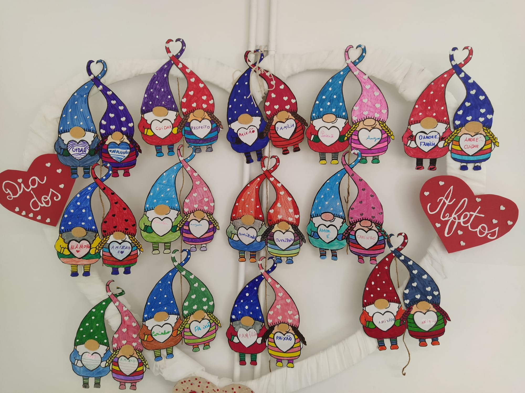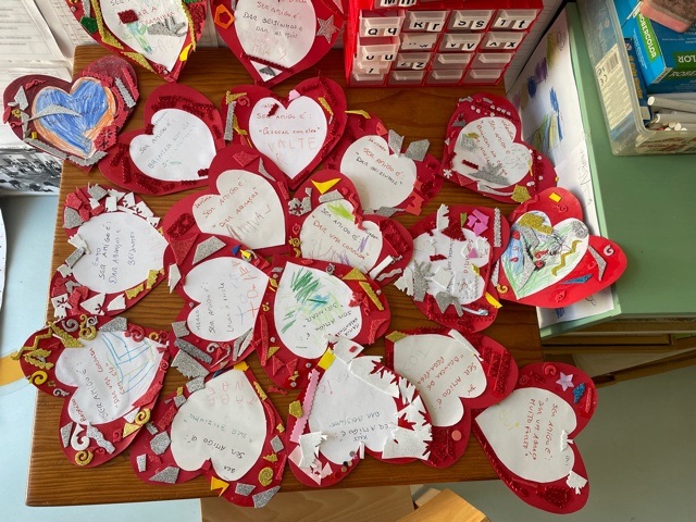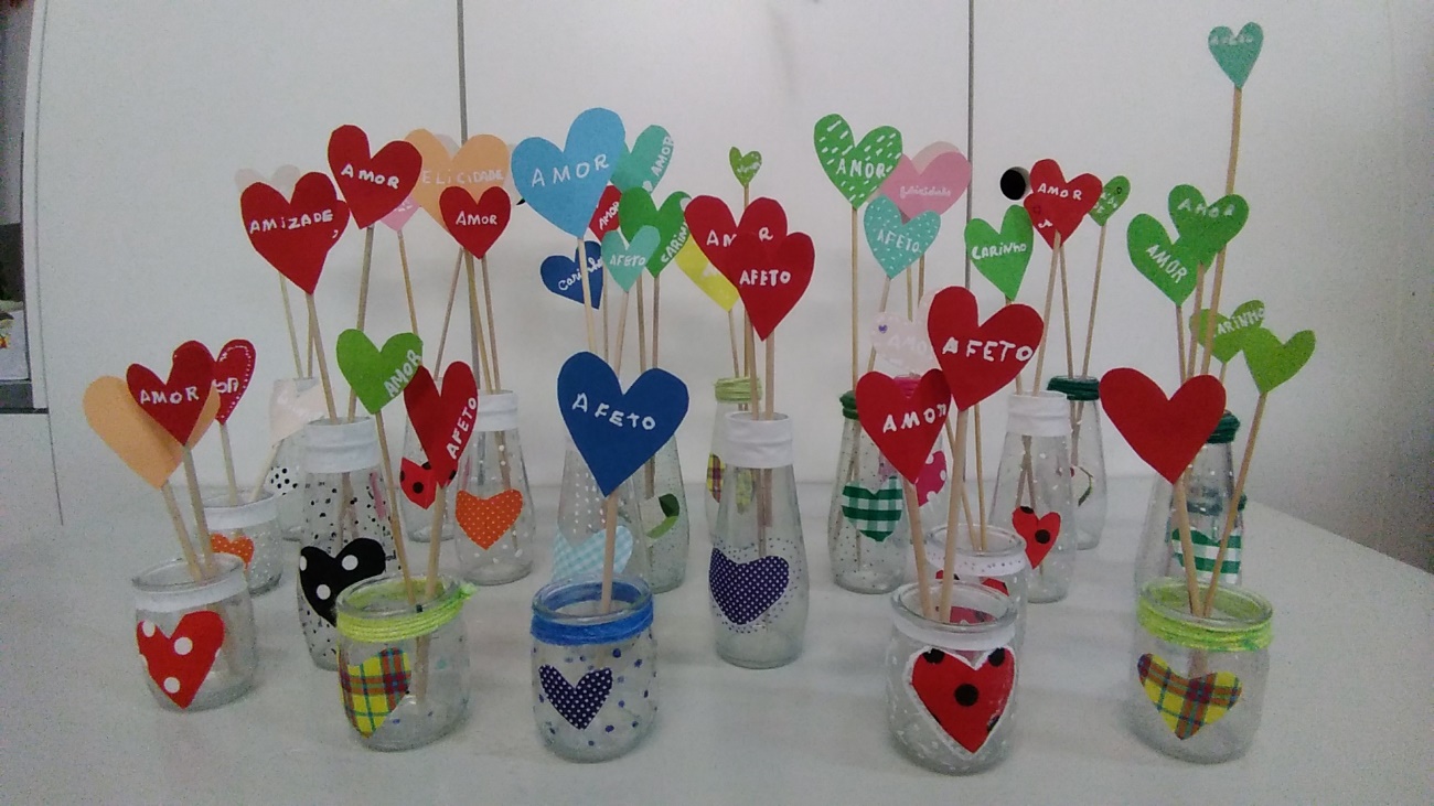 O dia foi assinalado com criatividade e imaginação. Através da audição de músicas, leitura de poemas, seguidas de reflexão e expressão de afetos, através de desenhos, palavras ou frases, reutilizando alguns materiais já usados e mantendo a preocupação ecológica, levantamos os nossos corações ao alto, numa celebração ao amor e à vida.