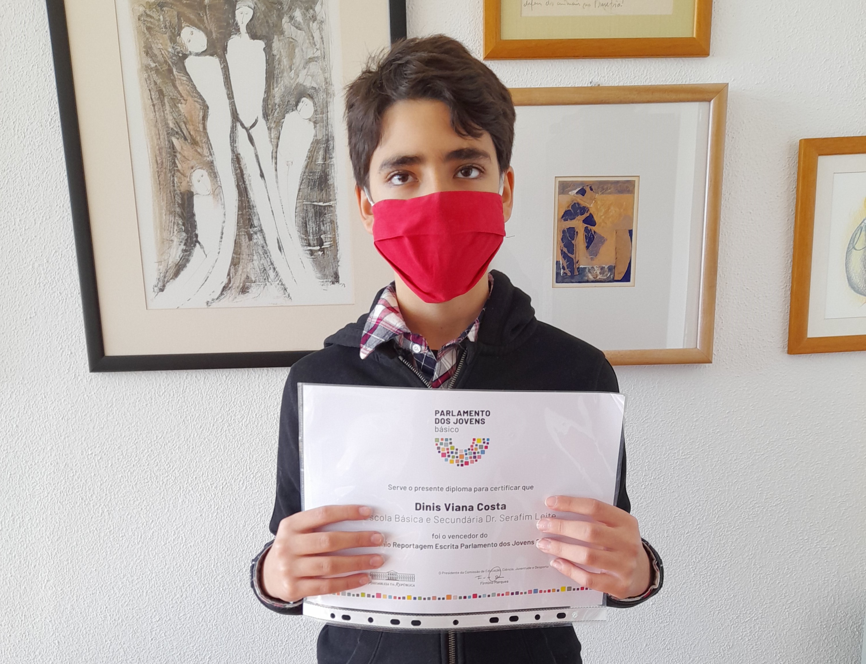 Que motivo de orgulho nacional: Dinis Costa (7.º B) alcança o 1.º lugar no Prémio Reportagem do «Parlamento dos Jovens» 2021! Muitos parabéns!
