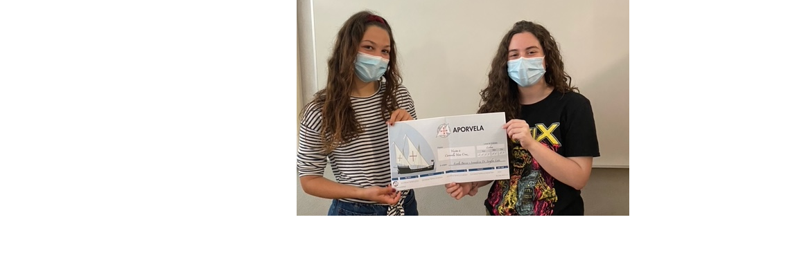 Maria Ramadinha e Marlene Rodrigues (12.º A) recebem, já, um dos prémios, para si e para a turma, no âmbito da sua vitória na iniciativa «Ler+Mar» (PNL): visita guiada à réplica da caravela «Vera Cruz! Estaremos a bordo, no próximo ano letivo!