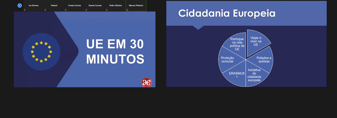 10.ºB, 11.ºB e o 11.ºD assistiram a uma sessão sobre a União Europeia, dinamizada pela aluna do 3.º ano da licenciatura em Direito, Mariana