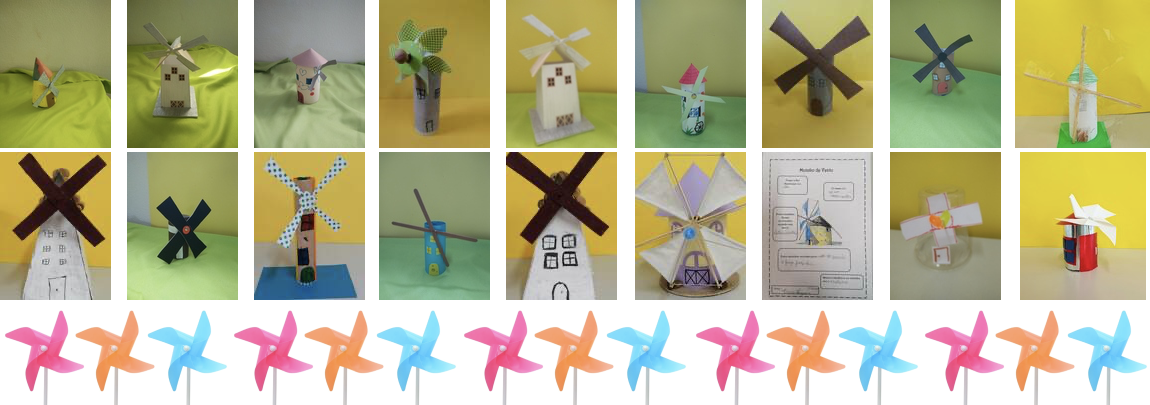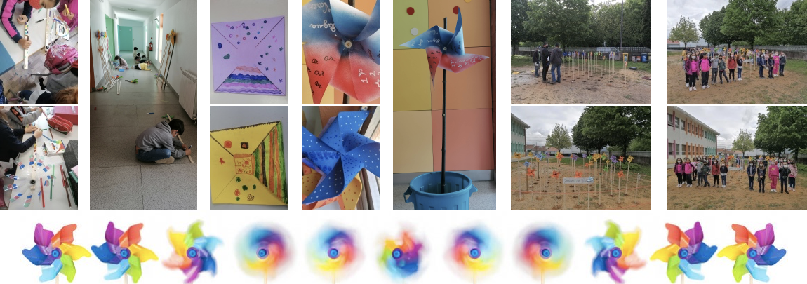 Os alunos do 2º ano e as suas professoras agradecem à empresa 3 F’S Jardins que nos ajudou a fazer os buracos na terra para colocar os cata-ventos.