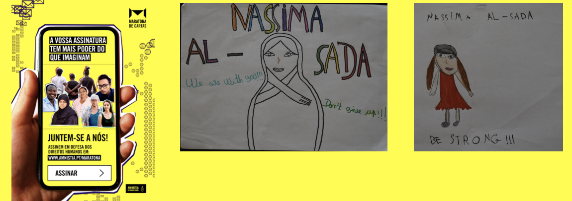 Desenhos realizados pelos alunos do 9.ºA para enviar às pessoas cujos direitos humanos estão em risco (https://www.amnistia.pt/peticao/maratona-de-cartas-2020/).