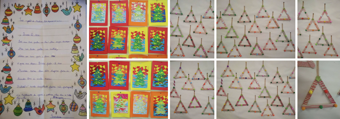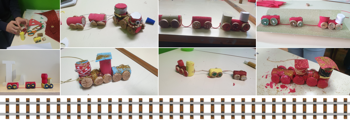 Os alunos do 5C e 5D têm estado a construir uns comboios de Natal reutilizando rolhas de cortiça e restos de tecido, papel, cartolinas etc... aqui tudo é reaproveitado e reutilizado! E, os resultados começam a surgir....