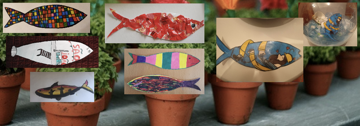 Em Cidadania e Desenvolvimento, os alunos do 5.ºC e 6.ºB foram desafiados a desenhar e decorar uma sardinha. Esta não foi uma ideia original, pois a ideia de usar uma sardinha como suporte para o trabalho criativo surgiu no século XIX, com Raphael Bordallo Pinheiro. Nos últimos anos a ideia tem tido enorme projeção, graças ao Concurso Sardinhas Festas de Lisboa - só em 2019 houve participantes de 30 países!